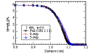 Pressure = 1 atm : (a) phi = 0.6 (left), (b) phi = 1.0 (right)