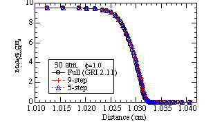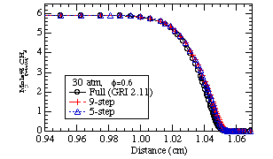 Pressure = 30 atm : (a) phi = 0.6 (left), (b) phi = 1.0 (right)